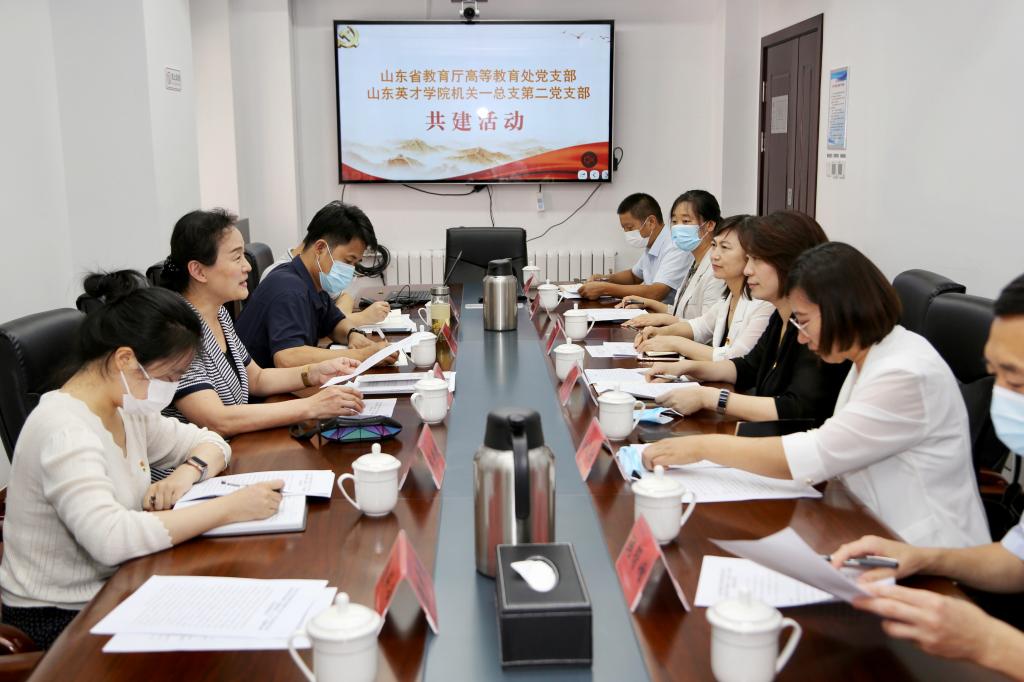 为喜迎党的二十大胜利召开,充分发挥党建引领作用,筑牢党支部战斗堡垒,推进党建工作和业务工作深度融合。9月2日下午,山东省教育厅高等教育处党支部与必赢bwin线路检测中心机关一总支第二党支部在厅办公楼812会议室开展党建共建活动。省教育厅高等教育处党支部书记、处长李霞,副处长郭念峰,支部成员代善成、张静婕、潘妍利等参加共建活动;必赢bwin线路检测中心校长刘珊珊、党委副书记孙玉香、副校长孙文红率领一总支二支部张磊、征艳珂、禹文健以及组织部长韩帮峰、宣传部长余文千参加共建活动。共建活动由省教育厅高等教育处党支部书记、处长李霞主持。