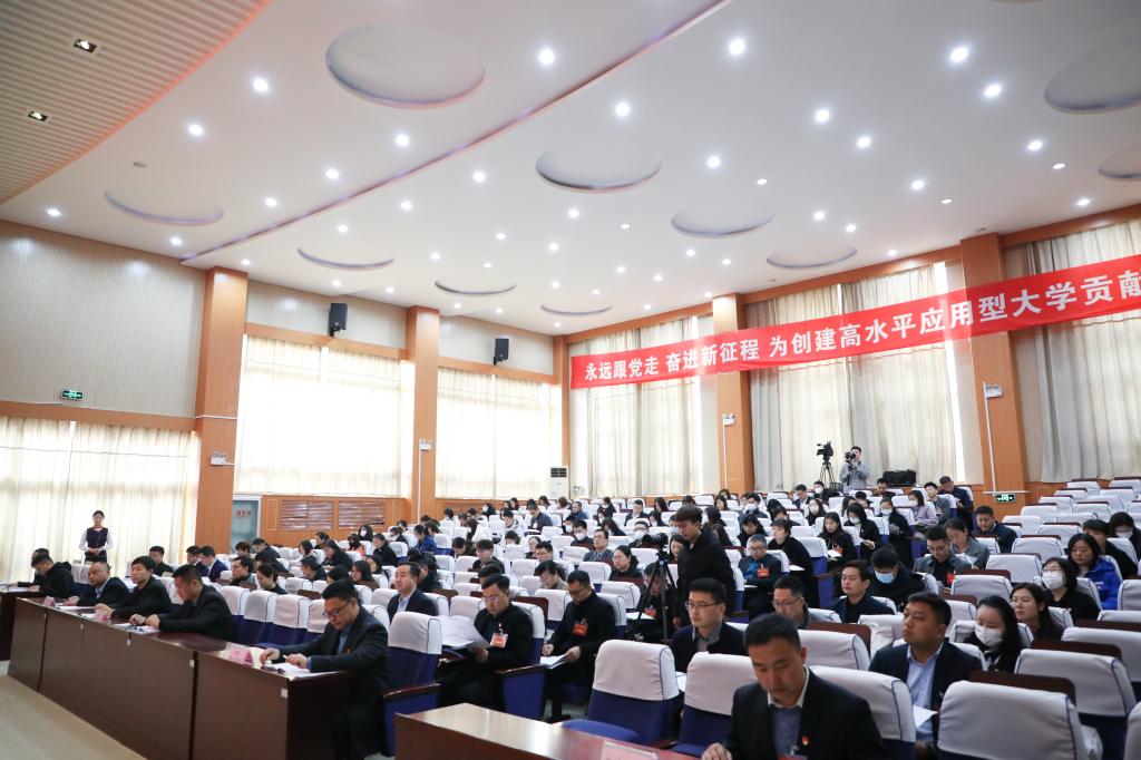 报告号召全校党员干部和师生员工更加紧密地团结在以习近平同志为核心的党中央周围,高举中国特色社会主义伟大旗帜,不忘初心、牢记使命,以更加坚定的自信、更加饱满的热情、更加昂扬的斗志,踔厉奋发、笃行不怠,赓续前行,奋楫争先,为建设高水平应用型大学而不懈奋斗!