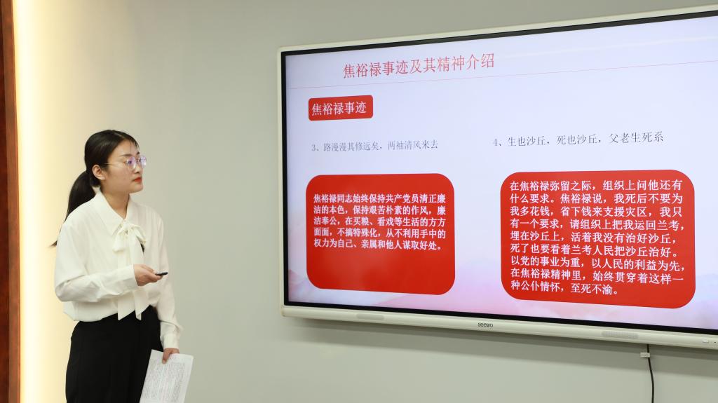 活动中,马新莹老师深刻讲述了“亲民爱民、艰苦奋斗、科学求实、迎难而上、无私奉献”的焦裕禄精神,分享学习焦裕禄精神对推进党员作风建设的认识,呼吁党员教师应以焦裕禄精神作为一面镜子,努力做焦裕禄式的好党员、好老师。刘娟娟老师从延安时期党的发展和延安精神的内涵入手,指出新时代青年教师应传承延安精神、汲取前行力量,让延安精神成为当代青年教师成长担当的强大思想动力。董晓培老师深情讲述了中国共产党从小到大、由弱到强,从一叶扁舟到巍巍巨轮的伟大历程,从五个维度分享了对“中国共产党为什么能”的深刻认识与理解。齐梦雪老师以“一个小吊坠”的故事开始,讲述了波澜壮阔的建党史诗,分享了对新时代继承和发展伟大建党精神的认识。邵丽丽老师从统一战线主题入手,分享了统战工作在革命、建设、改革各个历史时期为促进中华儿女共同团结奋斗发挥的重要作用。姬芳序老师讲述了一位伟大的革命母亲,“党史中唯一一个以非党人士被记录其中的人物——葛健豪”的奇特经历和非凡作为,展现了中国女性在党的感召与引领下不断觉醒的巾帼力量。