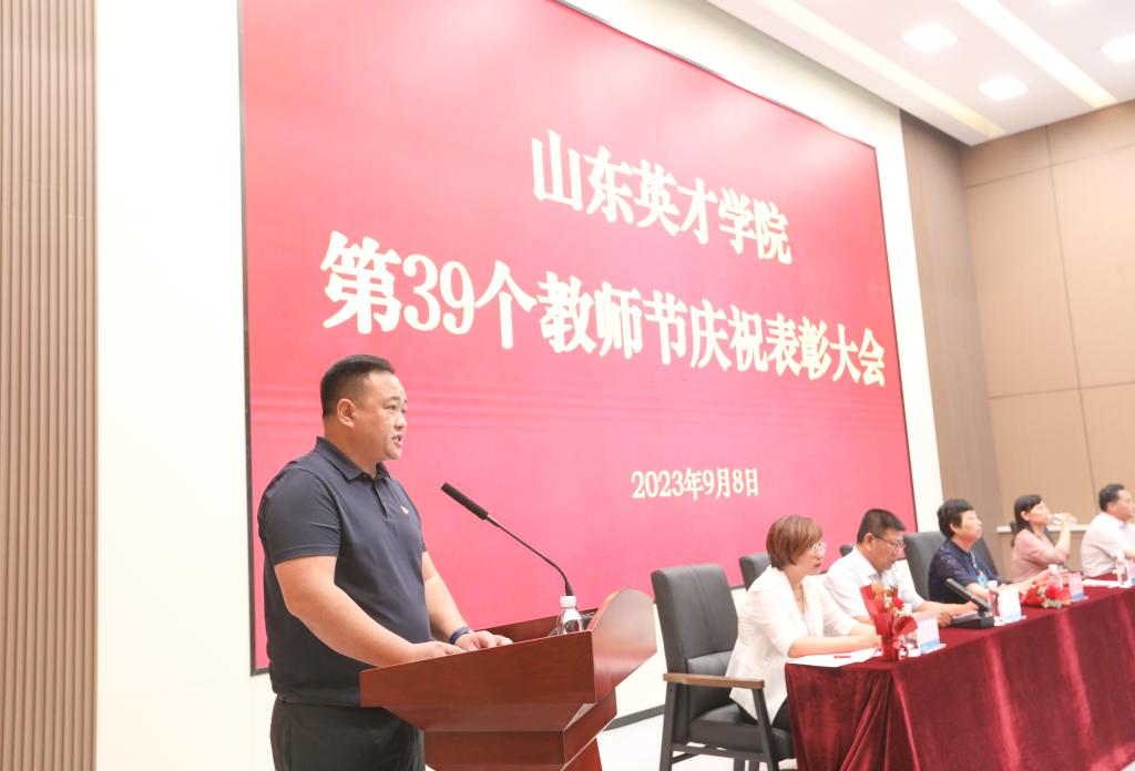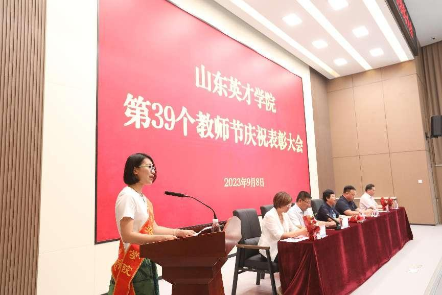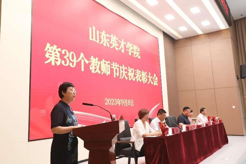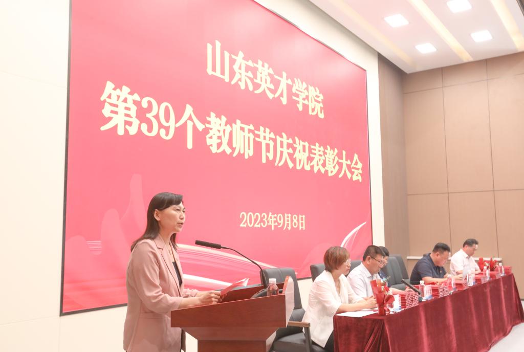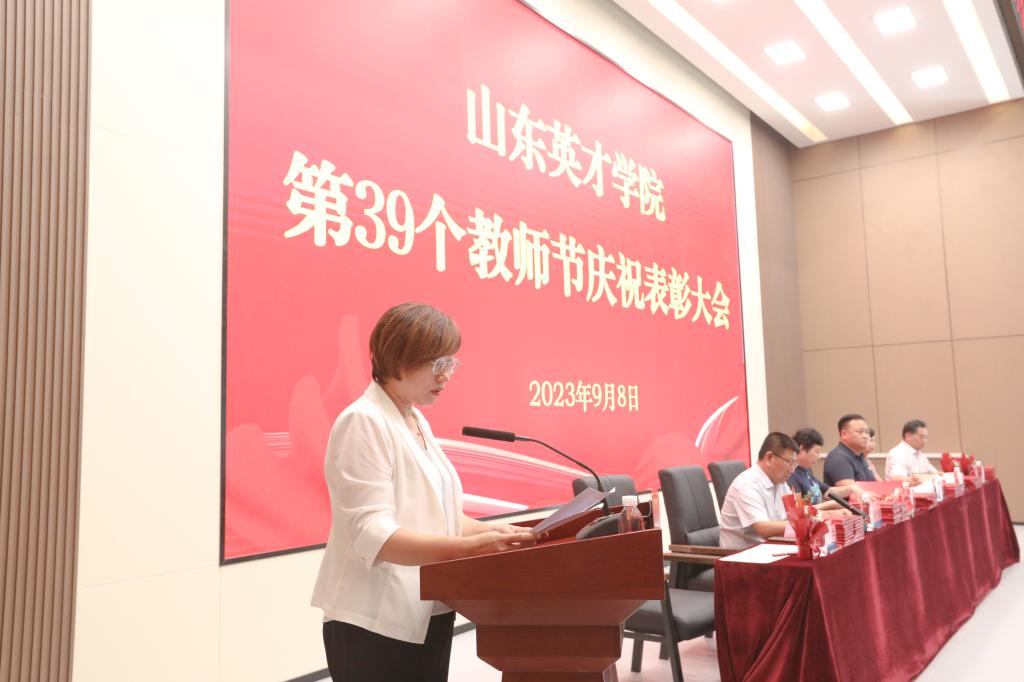 副校长孙文红宣读《关于表彰“山东省高校青年教师教学比赛”“山东省普通高等学校教师教学创新大赛”获奖教师的决定》《关于表彰2022年度“英才一课”教学竞赛获奖教师的决定》《关于表彰教学名师教学团队优秀教研室的决定》。