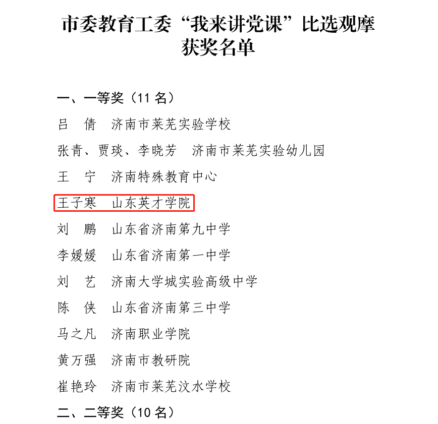 近日,济南市委教育工委举办2022年度党员教育讲师培训暨“我来讲党课”比选观摩培训班,来自31所市属高校(民办高校)、直属学校(事业单位)的精彩党课参加本次比选展演活动。必赢官网音乐舞蹈学院教师王子寒斩获一等奖。