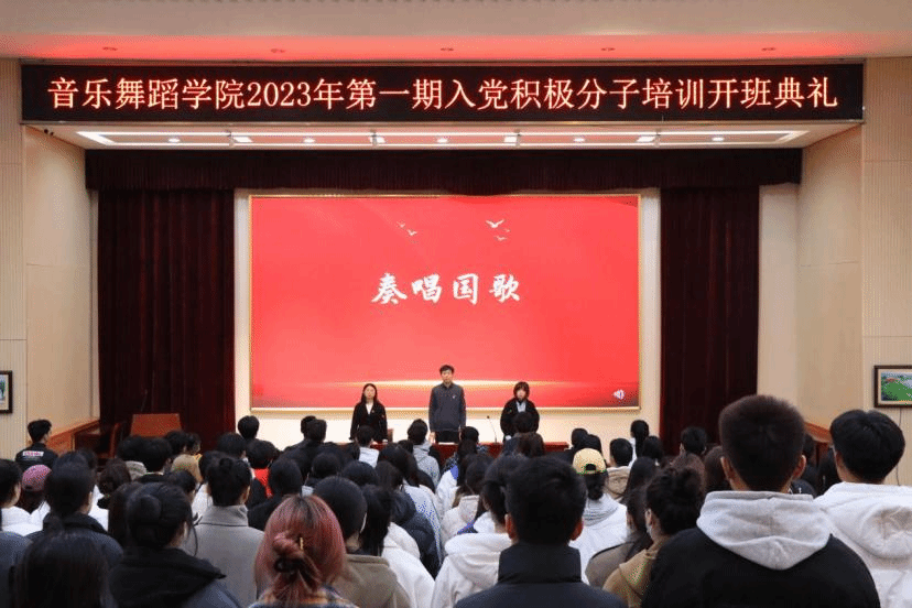 为深入学习宣传贯彻党的二十大精神,认真做好入党积极分子的培训教育工作,切实提高入党积极分子整体素质,夯实发展党员工作基础,2023年3月16日中午,音乐舞蹈学院在学术报告厅举办了2023年第一期入党积极分子培训班开班仪式。音乐舞蹈学院直属党支部书记祝景朋、组织员薛阳阳、组织委员有璐、全体辅导员及全体培训学员共同参加了开班典礼,开班典礼由组织员薛阳阳主持。