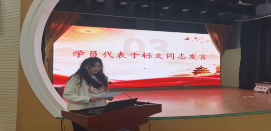 学员代表于轹文同志发言,于轹文同志代表全体学员承诺表示,将积极面对本次培训,遵守纪律,认真学习,时刻用一名共产党员的标准严格要求自己。