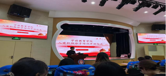 2023年4月26日,学前教育学院学工支部入党积极分子培训班在学前楼儿童小剧场举行了开班仪式,学前教育学院学工支部组织委员贺化龙主持会议,学前教育学院党总支副书记、学工支部书记王志涛,组织员,学工支部全体党员同志参加了开班仪式。
