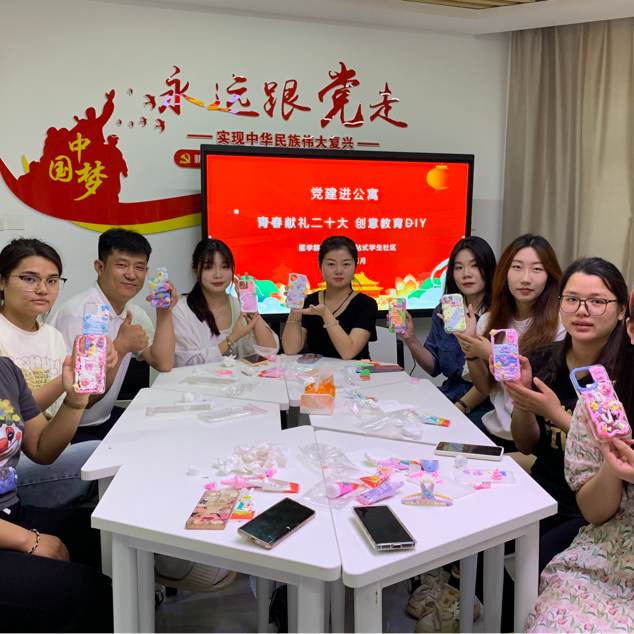 本次活动以宣传“将党建融入生活”为主,通过教师党员、学生党员和普通同学相互融合的方式开展手工教育,医学院为同学们提供手机壳、抓发夹、团扇等材料供大家DIY创作,现场一片欢声笑语,同学们在亲自体验制作的过程中,灵活运用每一个素材,审视每一个细节,最终完成一个成品,真正体验到动手的快乐,为医学院学子的学习生活增添了一抹亮色,也带动了一站式学生社区文化建设,拓展了心理健康教育新途径,提升了学生的人文素养和艺术鉴赏力。