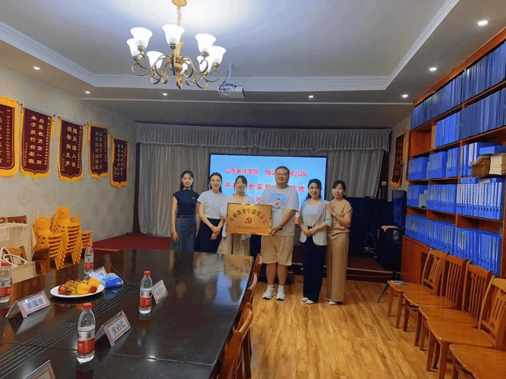 为推进红色实践教育基地建设,发挥学前教育专业优势。6月20日,学前教育学院党总支学工支部纪检委员秦绍月,学前教育学院辅导员董佳彤、崔蕴慈、姜翔赴济南市历城区相公吉祥苑国学幼儿园举行红色实践教育基地授牌仪式。相公吉祥苑国学幼儿园园长安白亿等出席仪式。