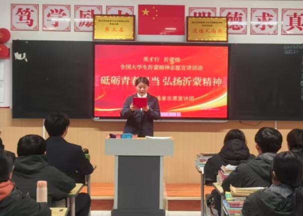 1月11日,必赢官网声音传递者志愿宣讲团带着“弘扬沂蒙精神,赓续红色血脉”的使命,走进了临沂军创医药卫生中等职业学校,开展宣讲交流活动。宣讲团的成员们深知沂蒙精神的重大意义,他们怀揣着对这段红色历史的敬畏之心,希望通过自己的努力,让更多的同学深入了解沂蒙精神,将红色基因传承下去。