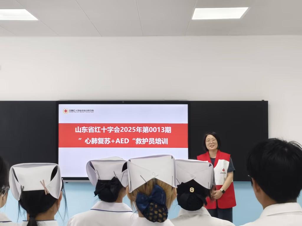 培训期间,夏淑娟老师结合典型急救案例,详细讲解了心肺复苏(CPR)和自动体外除颤器(AED)的重要性、操作原理及适用场景。她利用多媒体课件,展示了心脏骤停后的黄金救援时间、急救流程等关键知识点,让学员们深刻认识到掌握急救技能对挽救生命的重大意义。同时,她还强调了红十字精神在急救工作中的引领作用,鼓励学员们将人道理念融入未来的医疗实践中。