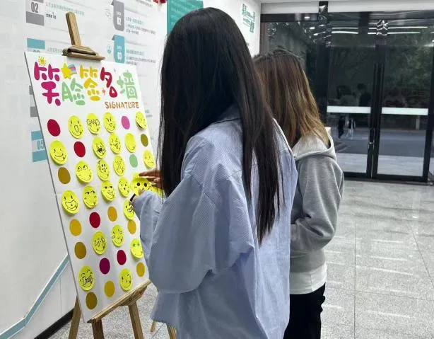 在“笑脸签名墙”创作区,师生们通过绘画、贴纸等形式创作个性化笑脸,现场气氛热烈,大家纷纷表示,这一活动不仅释放了压力,还增强了校园的归属感与凝聚力。