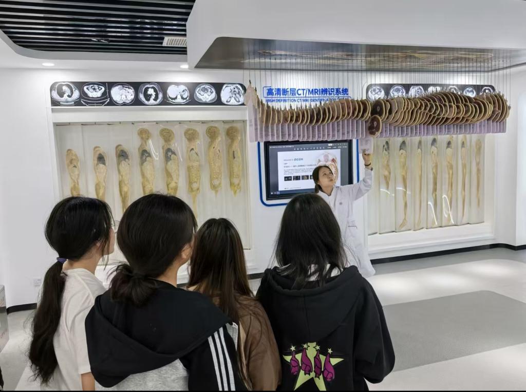 活动过程中,生命科学馆讲解员全程讲解,讲述展馆整体设计与展现手法,并鼓励同学们以好奇心为引,主动探索生命奇迹。在他们的带领下,参观者依次走进“生命起源”“胚胎发育”“精妙人体”“断层解剖学形态学“”生命康养“”健康教育“等主题展区。当同学们走出展馆,带走的不仅是震撼与收获,更是对医学精神的传承。希望通过本次活动,能够激发同学们的探索精神,将对生命奥秘的好奇转化为前行的动力,在医学求知路上保持热忱,未来以智慧与勇气续写生命科学的新篇章!