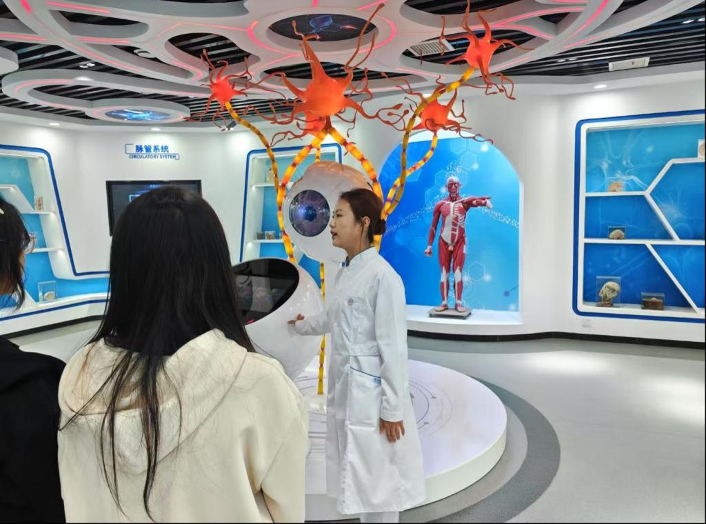 生命科学馆共有五大展区,每个展区都通过高科技互动展示、实物标本、图文解说等多种形式,生动打造了生命起源、人体构造、康养知识等的知识之旅。生命起源展区以远古化石和动态影像,呈现生命从单细胞到多细胞的演化;胚胎发育展区凭借真实标本与数字化交互平台,展现生命珍贵;精妙人体展区通过眼球模型、神经细胞造型,揭示人体构造;断层解剖学形态学展区用高清断层3D 打印模型和显微系统,供人探索;生命康养区以数字化交互与中药材标本吸睛;健康教育区强调个人健康责任,希望参观者以科学视角认识生命、呵护健康。