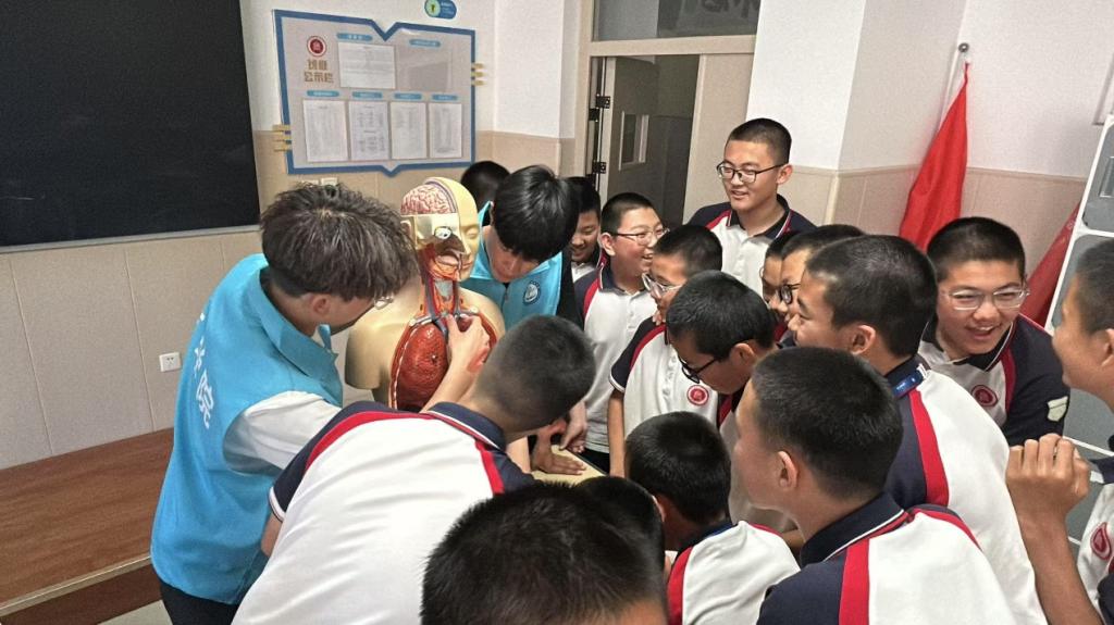宣讲结束后,活动进入到知识问答环节。老师及志愿者们通过3D解剖模型为学生们讲解人体的各个器官及其作用知识,带领学生们探索身体的奥秘,提醒学生们日常关注身体变化。