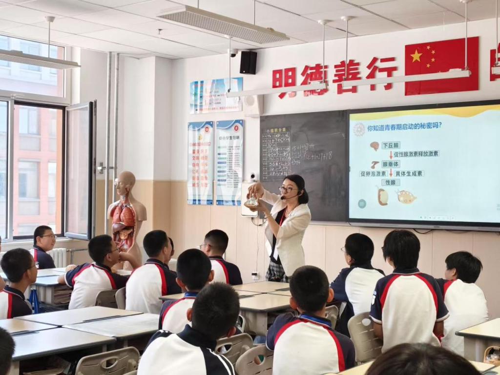 活动当天,徐莉老师结合医学专业背景,通过生动形象的课件和通俗易懂的语言,系统讲解了青春期生理发育特点,认识青春期启动的奥秘,探索科学家精神,了解生理变化以及卫生保健预防等科学知识的分享。针对初中生常见的困惑,如情绪波动、人际交往等问题,徐老师结合案例分析,引导学生学会自我调适,建立积极心态。