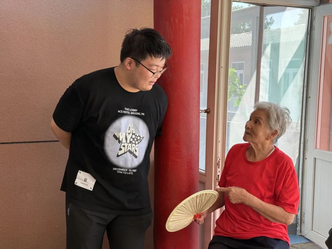 户外林荫道上,阳光透过枝叶洒下光斑,“守望相助” 实践团成员陪着老人散步。听老人打开话匣子,聊家长里短的暖、讲岁月沉淀的故事,絮语动人,成员真切体会到服务老人的幸福与乐趣。