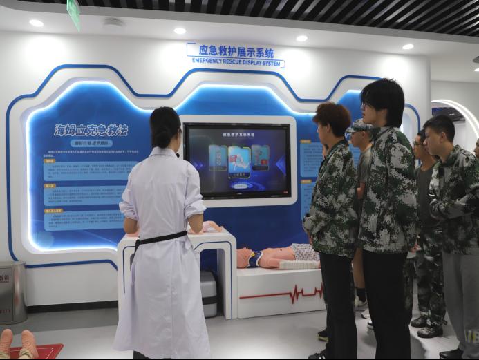 在急救综合实训室,新生们体验到了先进的可视化教学。在这里,在对模拟人进行心肺复苏按压时,能够实时看到被救者心脏的活动状态,可视化教学让同学们直观地理解了急救原理,极大地激发了他们对医学技术的探索热情。