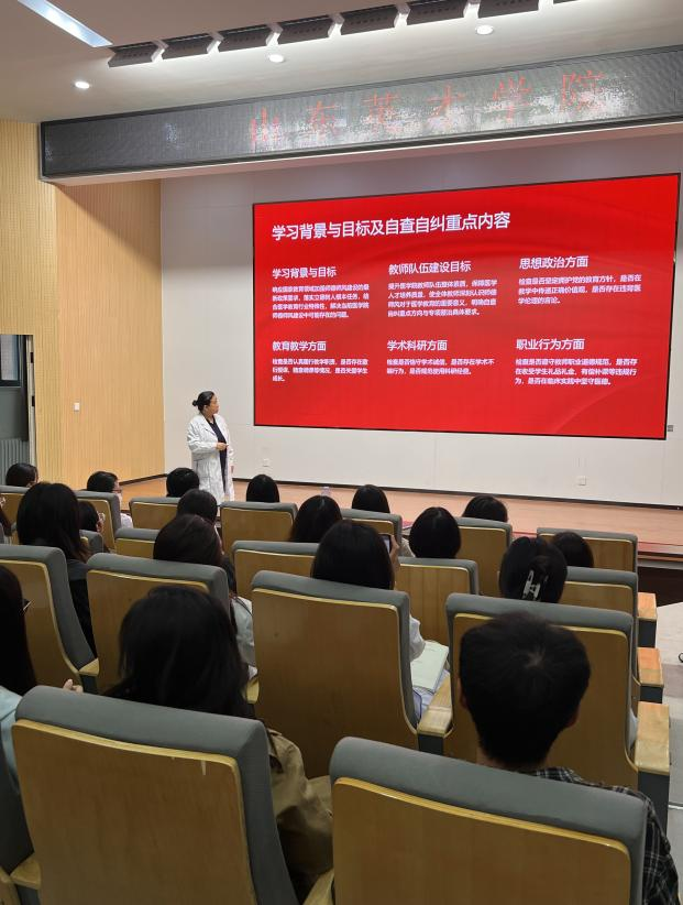 为深入贯彻落实学校师德师风建设工作要求,切实筑牢医学教育领域师德防线,9月23日下午,医学院在学术报告厅召开师德师风自查自纠和专项整治活动动员大会。医学院全体教师参会,会议由副院长王世芳主持。