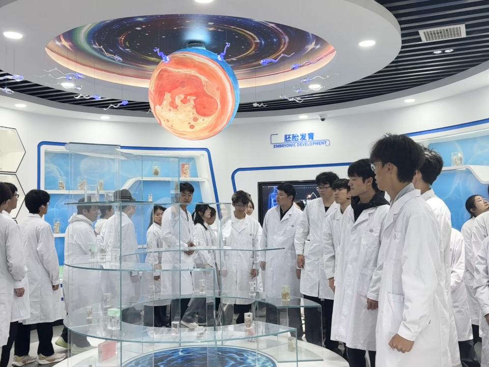 9:30,生命科学馆正门缓缓开启,身着白袍的2025级新生排成单列,鞋底擦过地面的沙沙声清晰可辨。他们在志愿者引导下俯身观察“矢状切面”标本,抬眼凝视“胚胎标本”——每一次呼吸都轻得像怕惊扰了玻璃缸里的“无语良师”。馆内保持“零扩音”模式,讲解员以耳语音量介绍标本结构与临床意义,5分钟静默环节仅闻心跳监测仪“滴——”声,向“无语良师”致以最庄重的敬意。