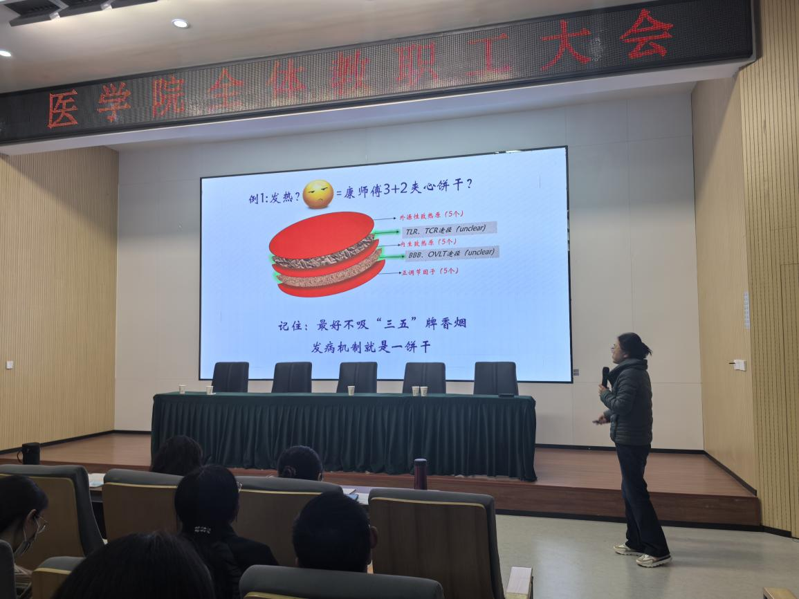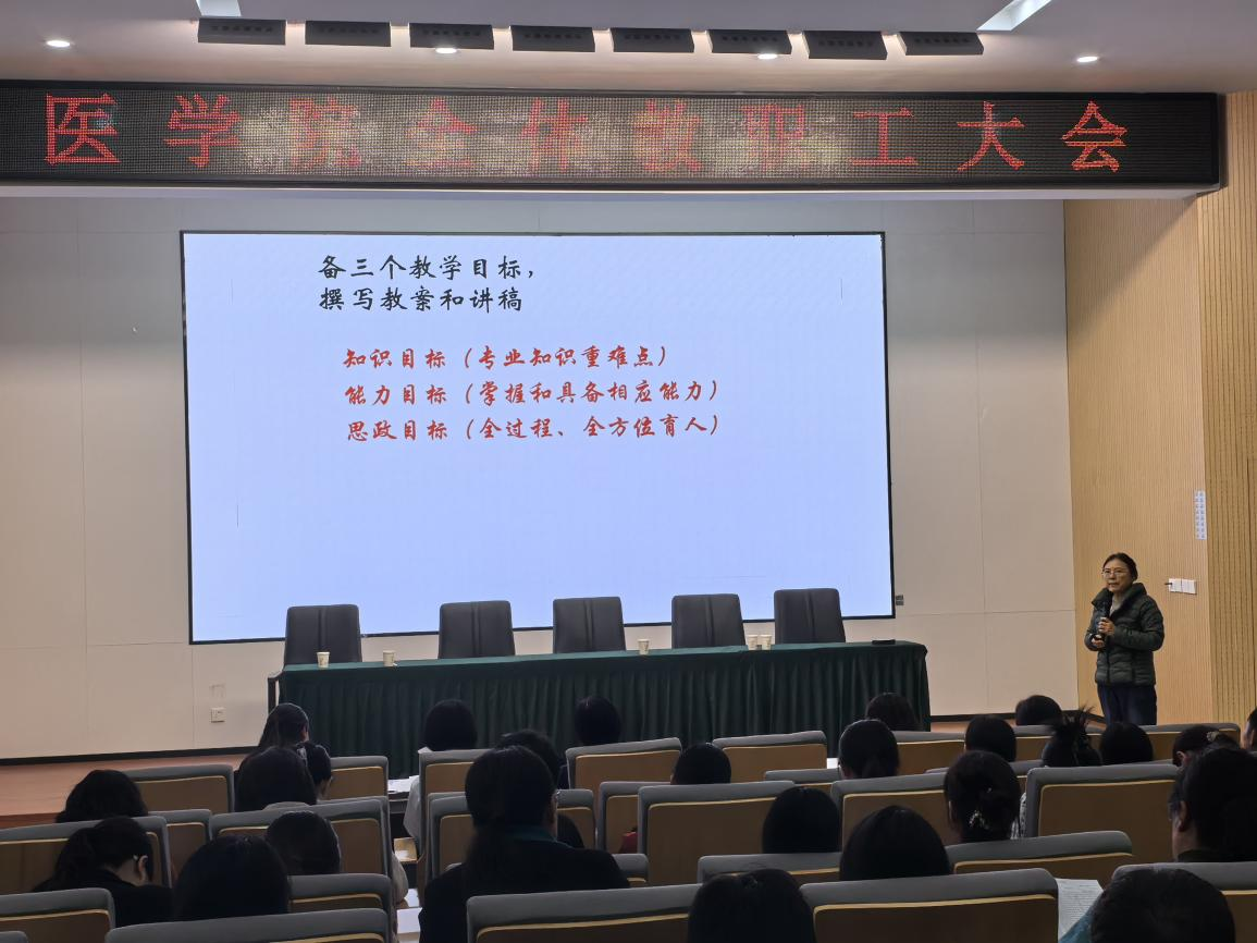 为全面提升医学教育教学质量,助力教师队伍专业化发展,我院于近日成功举办了“育人育才”教师培训系列讲座。本次讲座特邀本院资深专家高琳琳教授,以“努力做好一堂医学理论课”为主题,与在场青年教师及教学骨干进行了深入分享与交流。