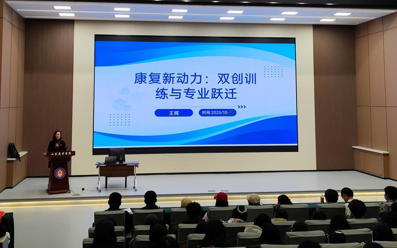 为深入贯彻国家创新创业教育方针,切实提升康复治疗学专业学生的创新意识与创业能力,近日,必赢bwin线路检测中心医学院在学术报告厅举办了2025级康复治疗学专业学生创新创业专题培训。培训以“康复新动力——双创训练与专业跃迁”为主题,由护理与康复实验教学中心主任王辉主讲,医学院辅导员及2025级全体新生共计220余人参加。
