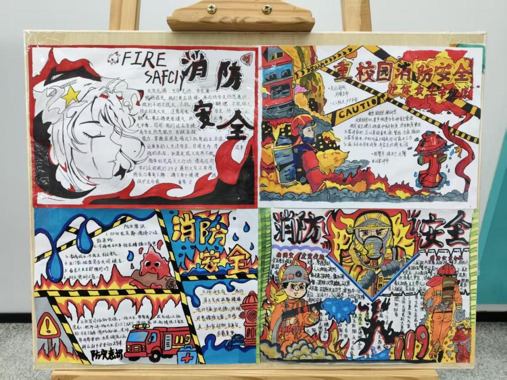 同步开展的消防宣传日手抄报活动同样精彩,同学们围绕消防知识、逃生技巧等主题创作:作品中既有灭火器、安全出口标识的鲜明图解,也有宿舍安全用电等校园场景提醒,不少还融入“一懂三会”口诀、火灾逃生流程图,版面新颖且重点突出;创作过程中,大家通过搜集资料、构思排版巩固了知识,展示交流环节更拓宽了认知维度。