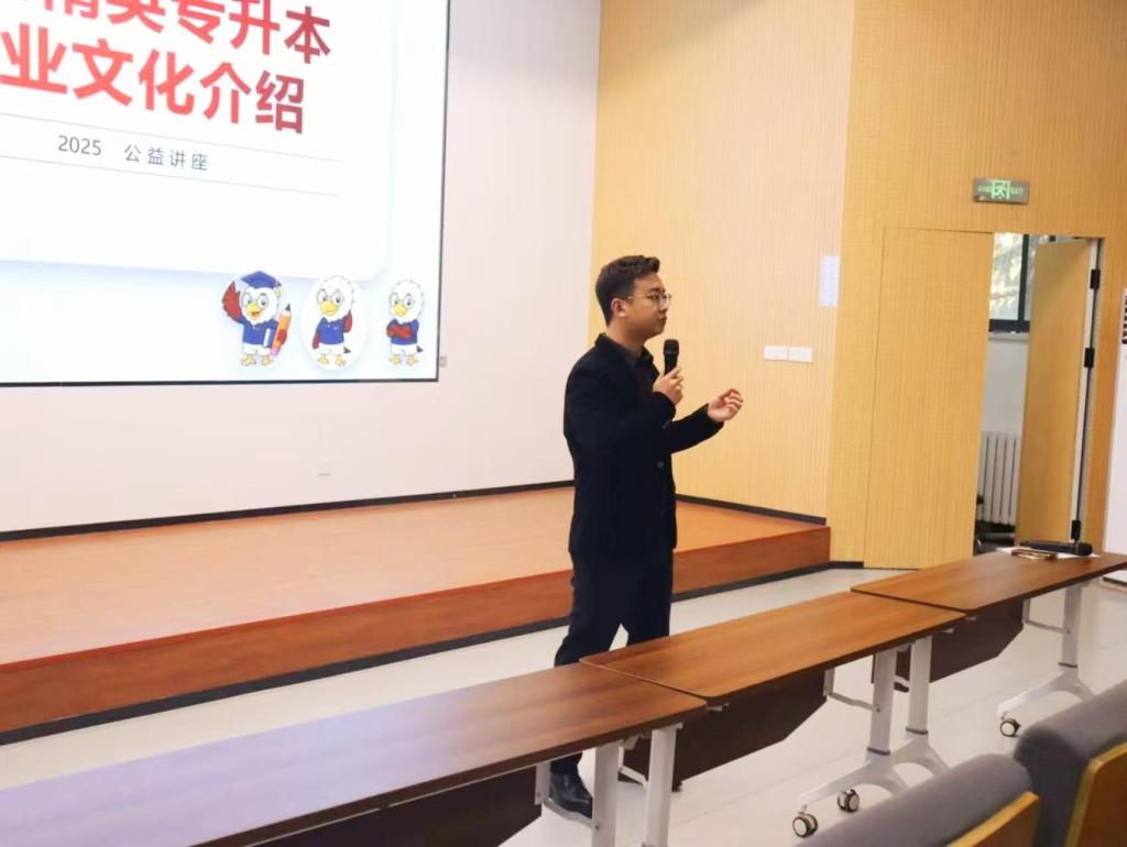 为搭建校企人才对接桥梁,助力2024级高职班学子明晰企业教师岗位发展路径、把握就业机遇,11月12日,医学院于1007教室开展企业教师招聘宣讲会,特邀精英专升本专业代表张老师,面向2026届潜在毕业生开展线上宣讲,为学子与优质企业搭建高效沟通平台,精准传递企业教师岗位招聘信息。