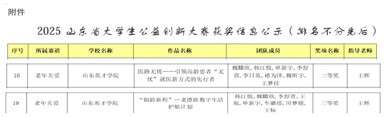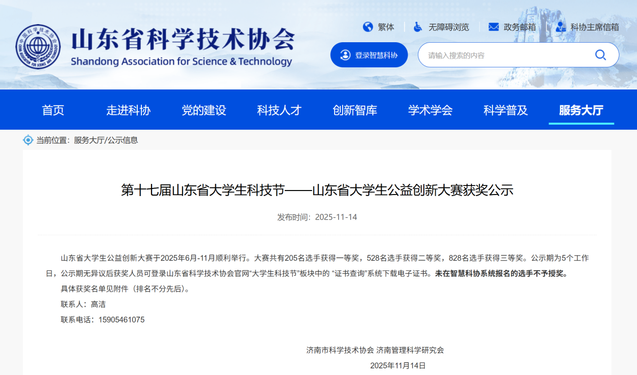 近日,第十七届山东省大学生科技节—山东省大学生公益创新大赛圆满落幕。本次大赛以聚焦社会公益需求、培育青年公益创新力量为核心目标,搭建起高校公益实践交流平台。医学院参赛队伍成功斩获二等奖1项、三等奖1项。