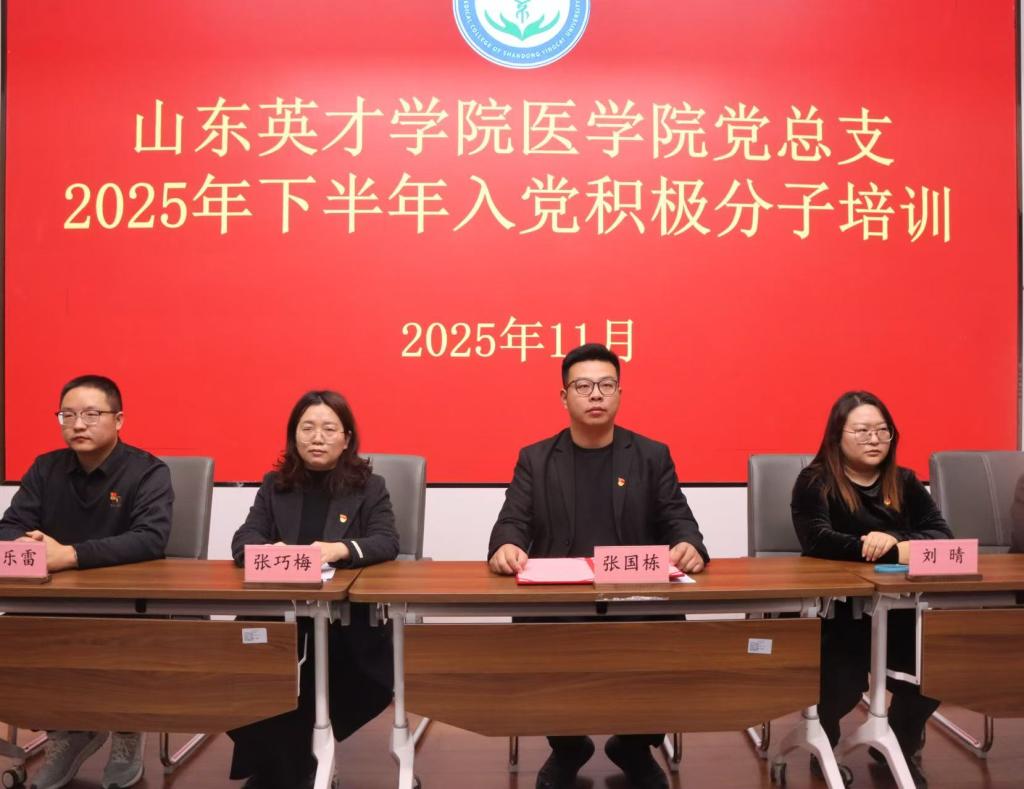 为深入学习贯彻习近平新时代中国特色社会主义思想,落实立德树人根本任务,以高质量党建引领医学人才培养,11月17日至11月24日,医学院党总支开展了2025年下半年入党积极分子专题培训。医学院党总支副书记张国栋、组织员张巧梅及全体辅导员老师出席仪式,全体参训入党积极分子以昂扬姿态参会。