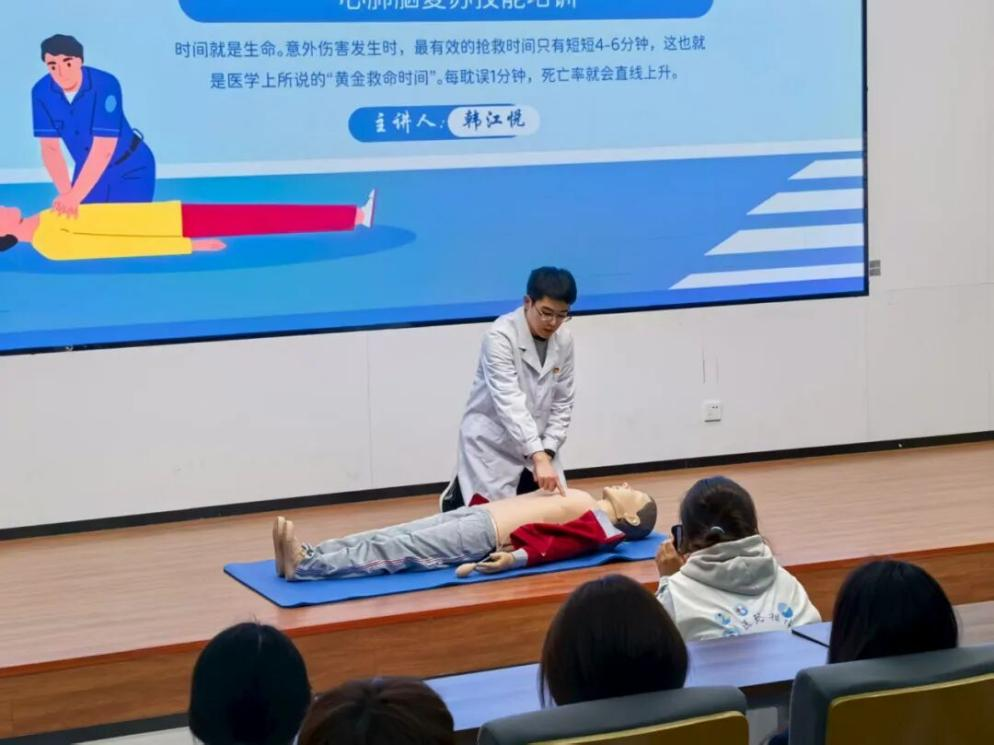 “敢救、会救、善救”是培训的另一关键词。培训结合《民法典》“好人法”条款,剖析“自愿紧急救助免责”情形,现场发放“急救安全守则”明白纸,提醒同学们施救前评估环境、施救中做好自我防护、施救后第一时间呼叫120并寻找成人支援,彻底打消“想救不敢救”的顾虑。