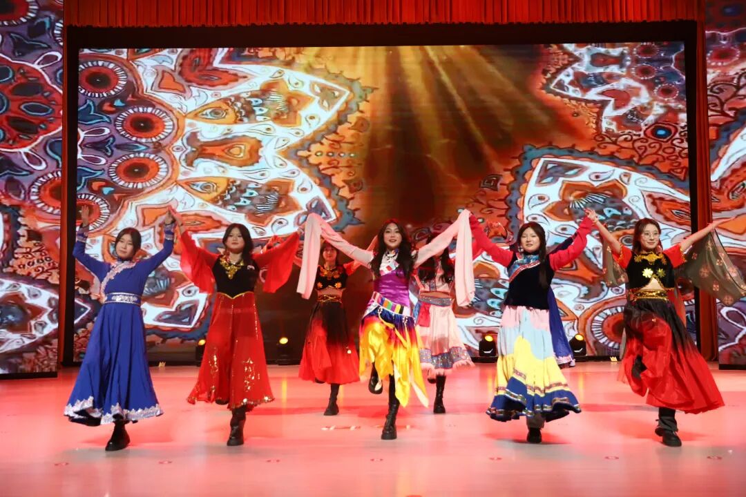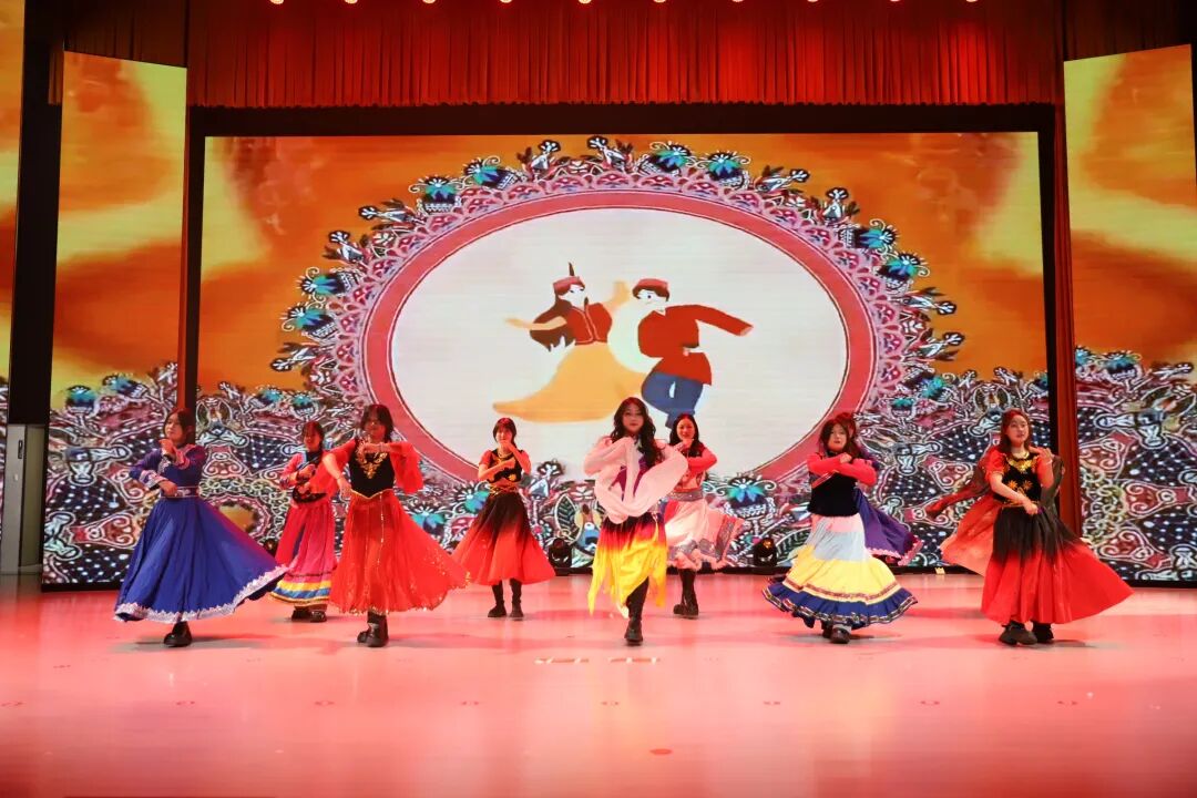 舞蹈《民族大联欢》为元旦晚会拉开序幕。手牵手、心连心,共同展现出各民族的团结与繁荣。他们用热情的舞蹈,传递着对新一年的美好期待!