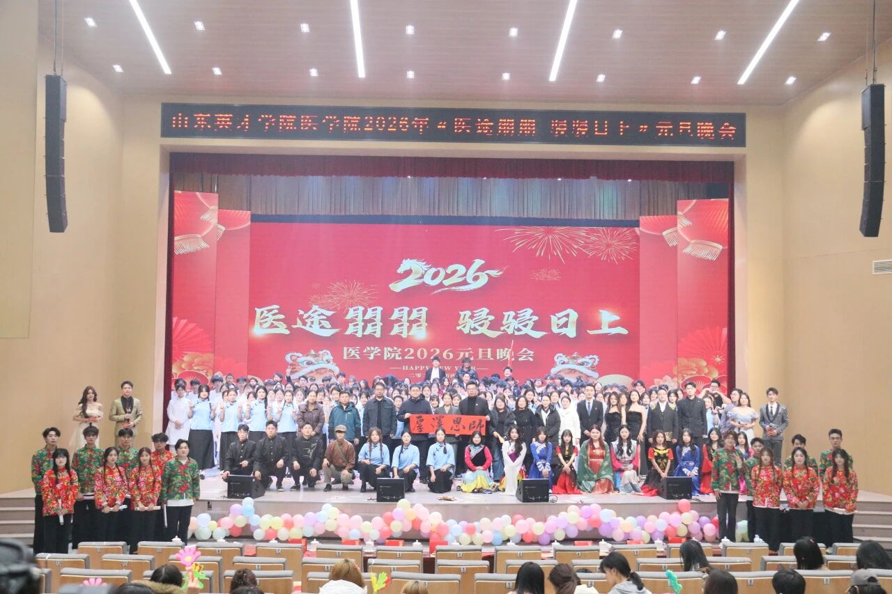 瑞蛇辞岁去,骏马踏春来。12月16日,医学院于英才音乐厅成功举办“医途朤朤,骎骎日上”2026年元旦晚会。必赢bwin线路检测中心校长助理、团委书记、学生工作处处长张瑞君、学前教育学院党总支书记、院长王琪瑶、马克思主义学院院长李强、副院长武玉兴,团委副书记陈迎春、工学院党总支副书记曹丽娟、音乐舞蹈学院党总支副书记张龙,山东英才高级技工学校校长冯俊建、学生管理办公室主任李振、医学院师生代表共计1300余人参加,晚会特邀章丘区绣源西城社区主任司亮一行莅临指导。