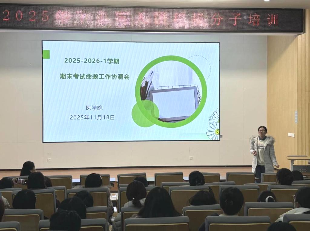 为规范命题管理、保障考试公平、提升考核质量,11月18日,医学院在学术报告厅召开了2025-2026学年第一学期期末考试命题工作协调会,全体任课教师及教学管理人员参会。