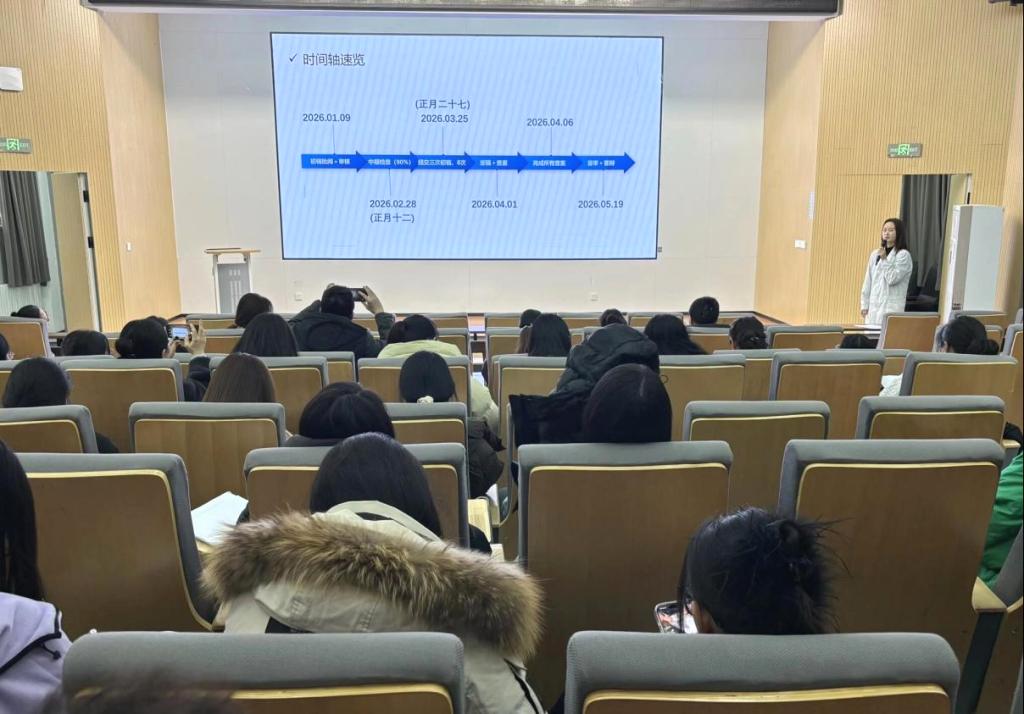 为提升2026届本科毕业生毕业论文质量,提升指导效能,12月23日,医学院在学术报告厅召开毕业设计(论文)指导培训会。会议由杨璐老师主讲,医学院2026届毕业设计(论文)指导教师参加。