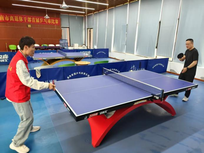 社区活动室内,成员们陪伴社区人员打乒乓球,他们专注的眼神和灵活的步伐展现了青春的活力,也在一来一回的球拍声中增进与社区居民的交流与互动。