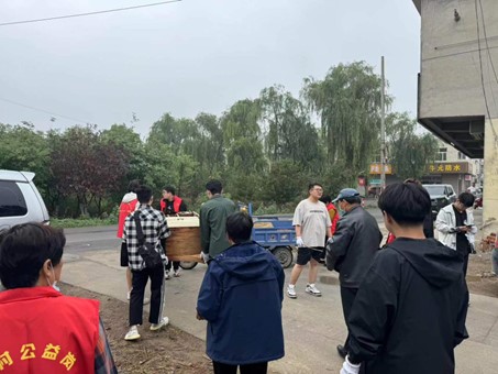 大学生志愿者进行清理杂物