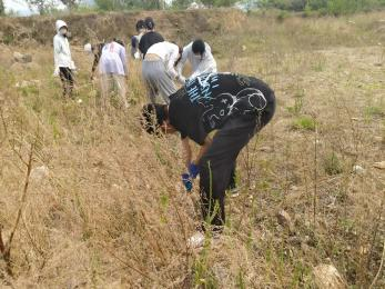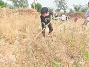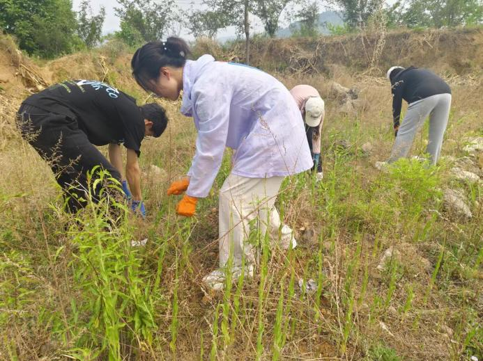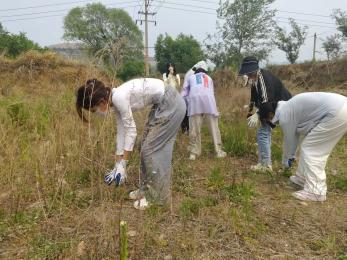 杂草清除完毕时,志愿者对现场进行最后的清理工作,做好最后剩余杂草摘除、清运任务。