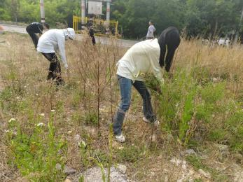 志愿者们负责路边杂草清除任务,对小型杂草进行手动拔除、清理,部分志愿者进行拔草,另一部分志愿者负责清运。在负责人的指导下将小型杂草清除完毕。