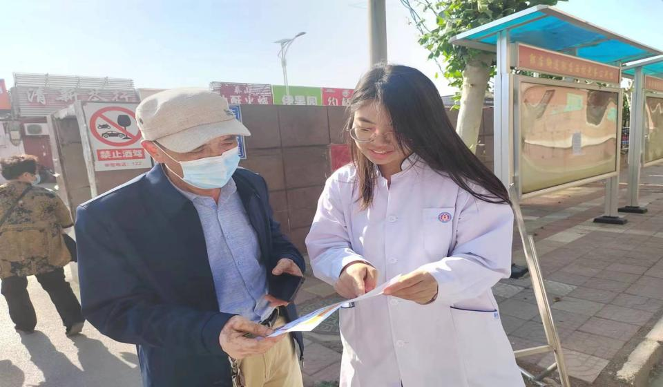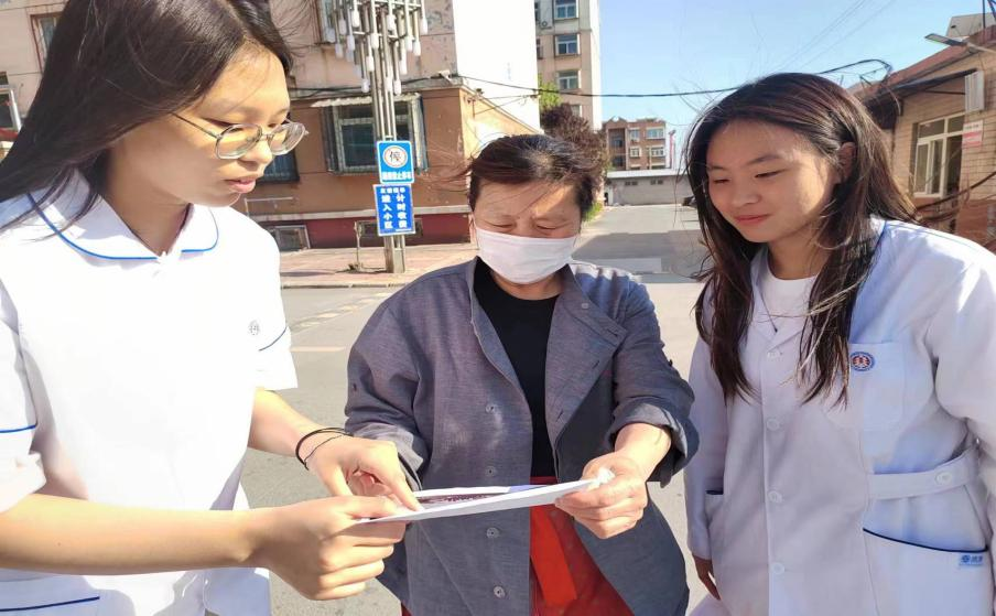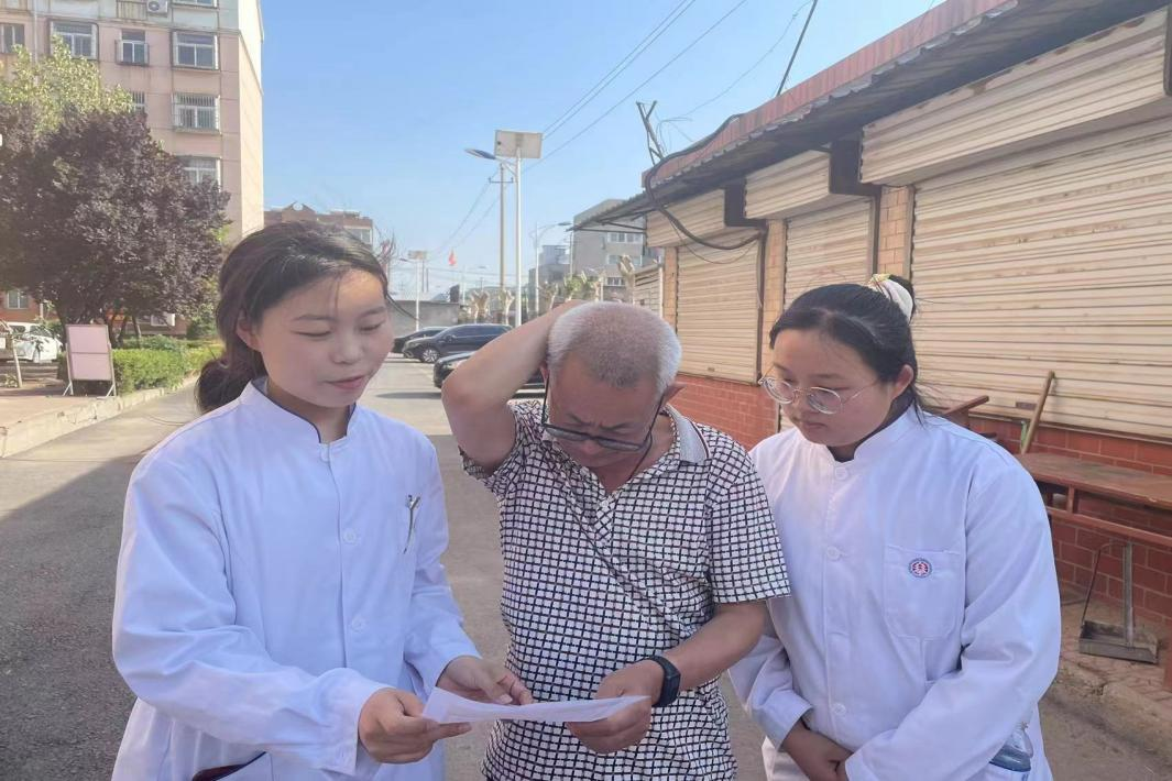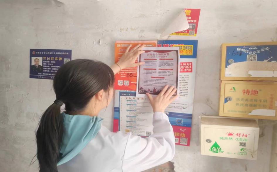 实践团队成员进行活动项目一,向居民普及消防安全的重要性。为环境保护献出自己的一份力量。