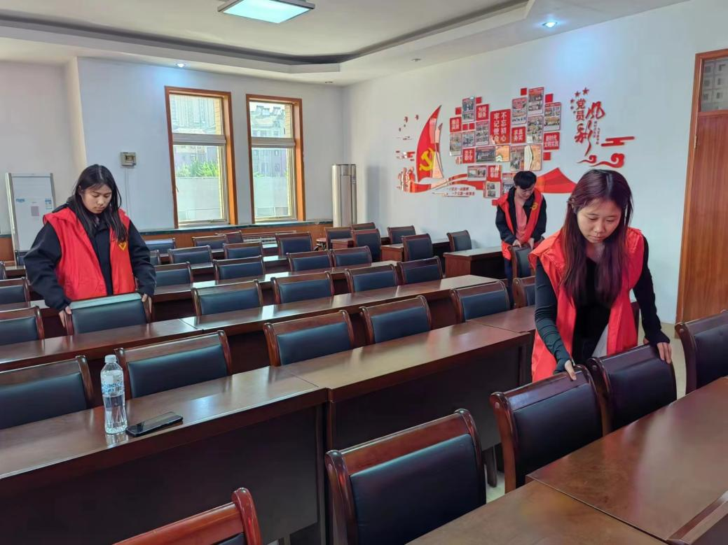 维持公共区域干净整洁,实践团成员伸出援手,积极参与到维护环境卫生的工作中,将桌椅摆放得整齐有序。