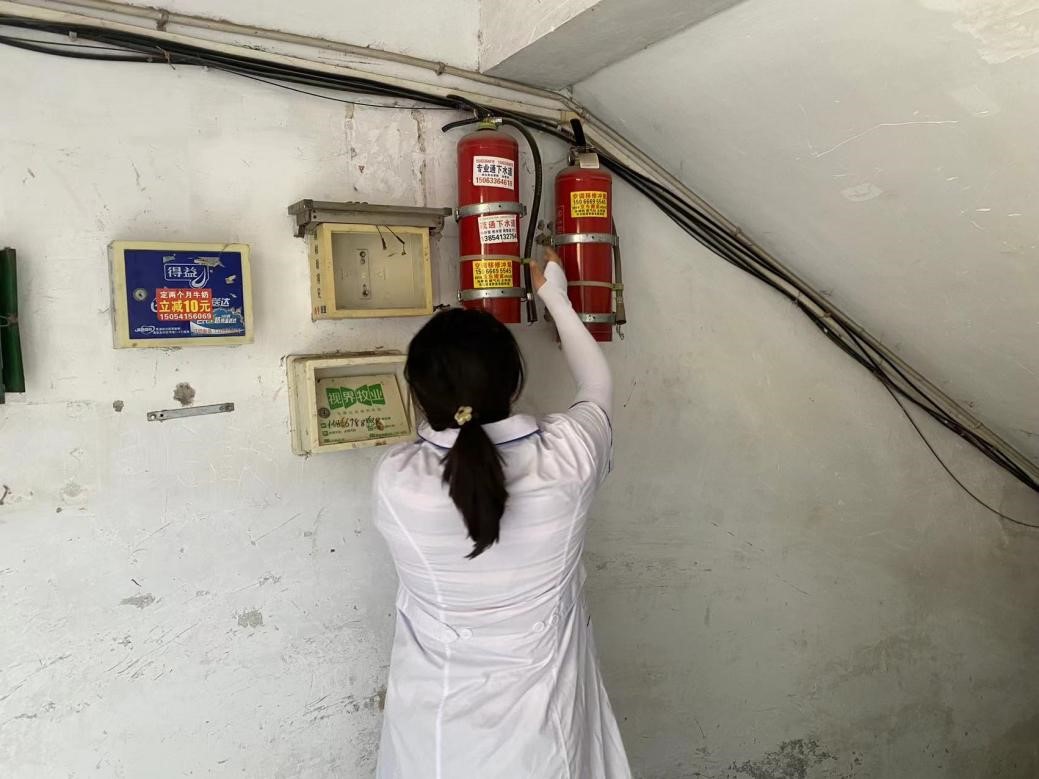 实践团成员们紧密联系社区实际生活,对居民日常生活中用火用电安全及火灾发生时的自救办法进行了讲解。并进入社区居民楼内部,检查灭火器是否过期、楼梯间杂物是否堆放整齐、电缆是否破损等情况,切实排查了社区安全隐患。