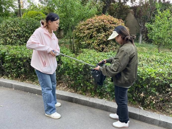 清扫完毕后,志愿者们将清扫出的垃圾倒入垃圾袋内,践行“垃圾入桶”,营造干净整洁的社区环境。