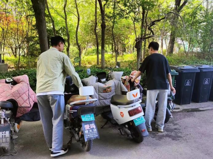 社区内卫生清扫完毕后,团队成员们又积极参与到整理和摆放电动车及道路安全锥的行列中,进一步优化社区环境,营造干净整洁的居民生活环境。