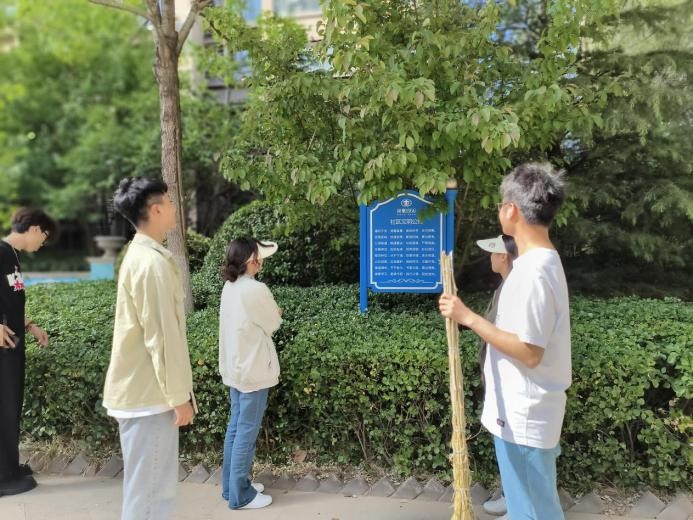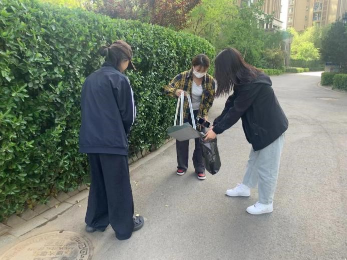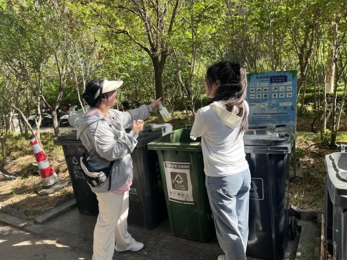 学生志愿者们学习并普及垃圾分类知识,倡导居民在家中按照厨余垃圾、可回收垃圾、有害垃圾、其他垃圾分类标准,定时到垃圾投放点进行分类投放。