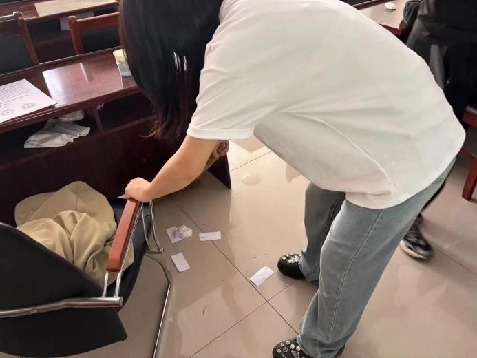 在活动开始之前,实践团的成员们帮助当地的负责人打扫了会议室。实践团的成员们分成俩个队伍,第一个队伍对桌子以及椅子进行了整理摆放以及擦拭;另一个队伍对地板进行了打扫,实践团的成员们齐心协力,互相帮助,没有任何一个人偷懒,大家很快就让会议室变得干净整洁。