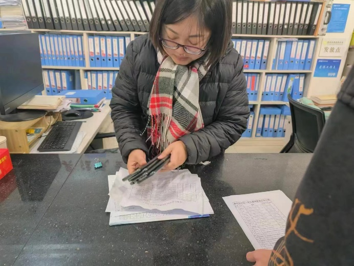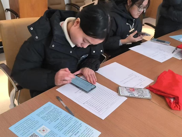 负责人给二组分发通讯工具与需要提供帮助的居民名单,医保注意事项宣传页等工具。