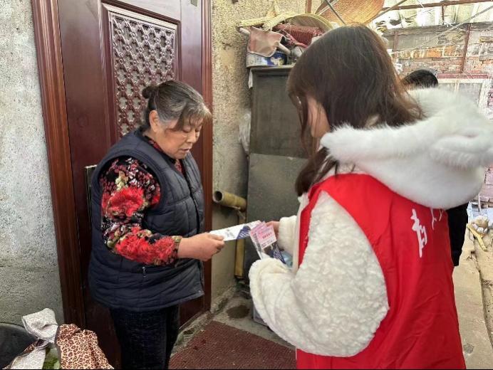 志愿者们到达目的地后,由社区负责人带领,分成两组为社区居民提供人文关怀,提醒医保缴费通知与用电安全宣传等。