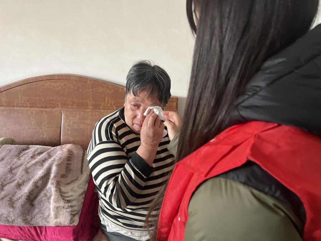 在去下奶奶家慰问的时候,聊天过程中,奶奶突然潸然泪下,让志愿者们也十分感动。