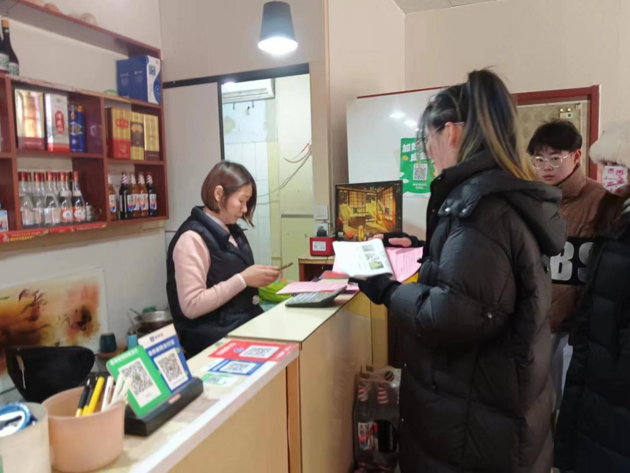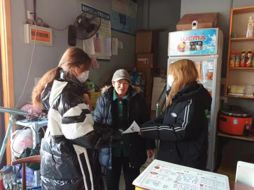 在征得社区商户的允许后,志愿者们走进各商铺,并通过发放明白纸并填写回执单等,提醒商户和居民注意防范一氧化碳中毒。