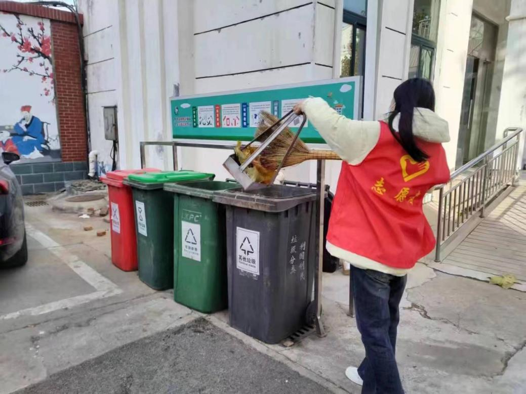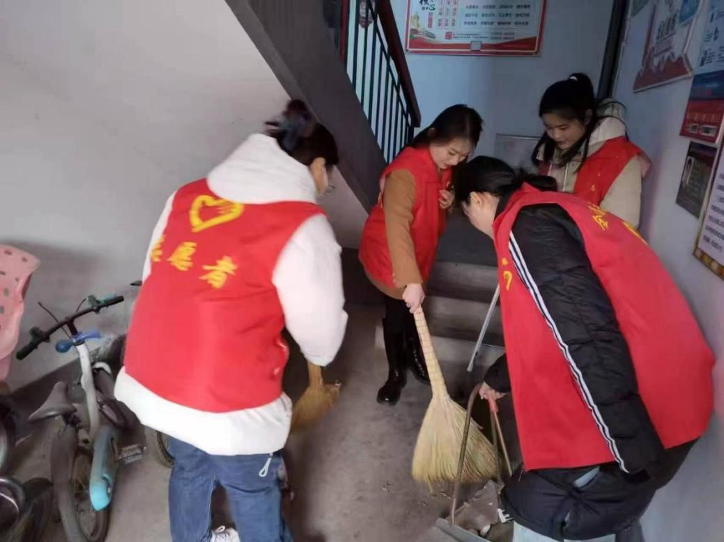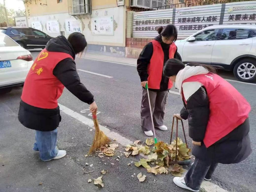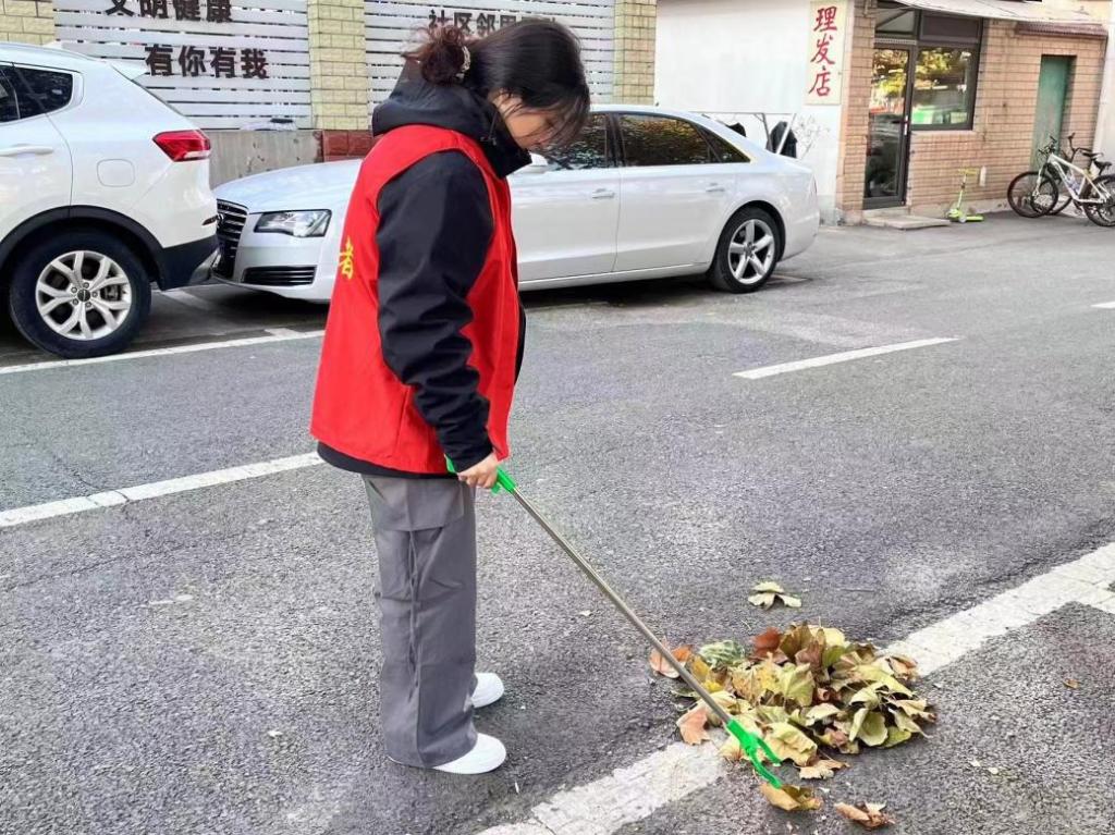 实践团队成员为小辛社区整理清扫了街道上和楼道里的堆积物、落叶等垃圾。为老年人提供整洁舒适的环境。