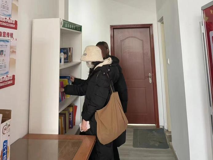 在清理道路积雪的同时,志愿者们看到村委会屋里环境杂乱,便收拾了书架子和角落里的桌子,很快便整齐有序。