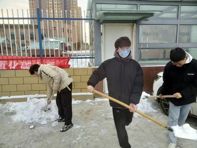 活动一开始,志愿者们拿好铁锹,扫把,扫积雪,铲冰层,虽然天气寒冷,手冻僵了,脸冻红了,但丝毫没有阻挡大家清雪除冰的热情。